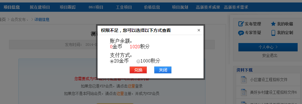 第六步:會(huì)員瀏覽后會(huì)提示付費(fèi)操作。