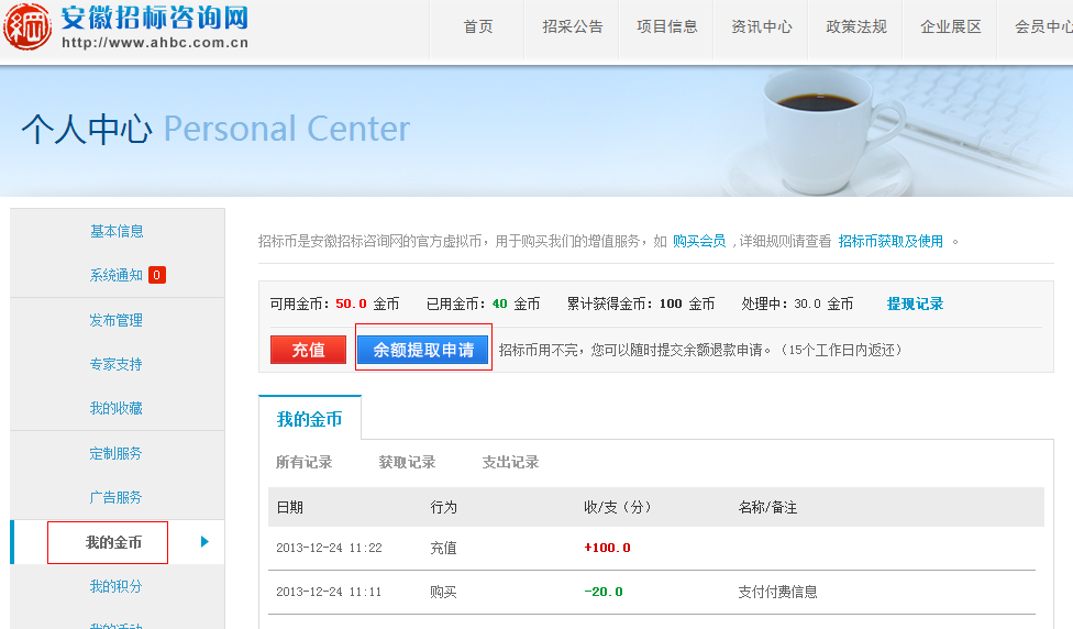 第七步:在個(gè)人中心中,提交余額提取申請(qǐng),待工作人員核實(shí)后,三到五個(gè)工作日將聯(lián)系您。